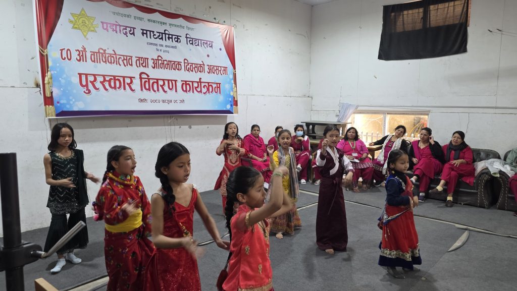 पद्मोदय माध्यमिक विद्यालयको ८० औं वार्षिकोत्सव, अभिभावक दिवस तथा पुरस्कार वितरण कार्यक्रमका केही सुन्दर झलकहरू। 🏫✨साना नानीबाबुहरूको उत्कृष्ट सांगीतिक तथा सांस्कृतिक प्रस्तुतिदेखि लिएर विद्यार्थीहरूलाई मेडल तथा पुरस्कार वितरणसम्म—आजको दिन निकै उत्साहजनक र गौरवपूर्ण रह्यो! 🏅💃